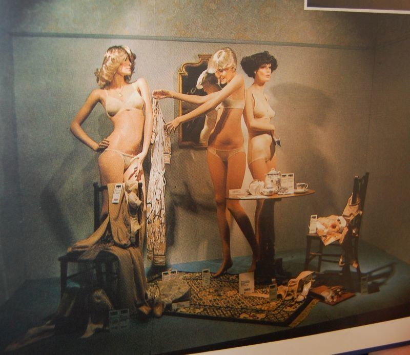 Should be funny: Discovered in 1973, page 16. A Munich department store (name unknown), presents corsetry in a museum environment. Under the heading "Munich's first buseum", the shop window wrote the following lines: "The word creation Buseum deserves a prize! A delicious idea for the adorable windows with bust holders and other women's underwear. Everything fit together, including the buseal mannequins!" (Das Schaufenster 05/1973: 16)