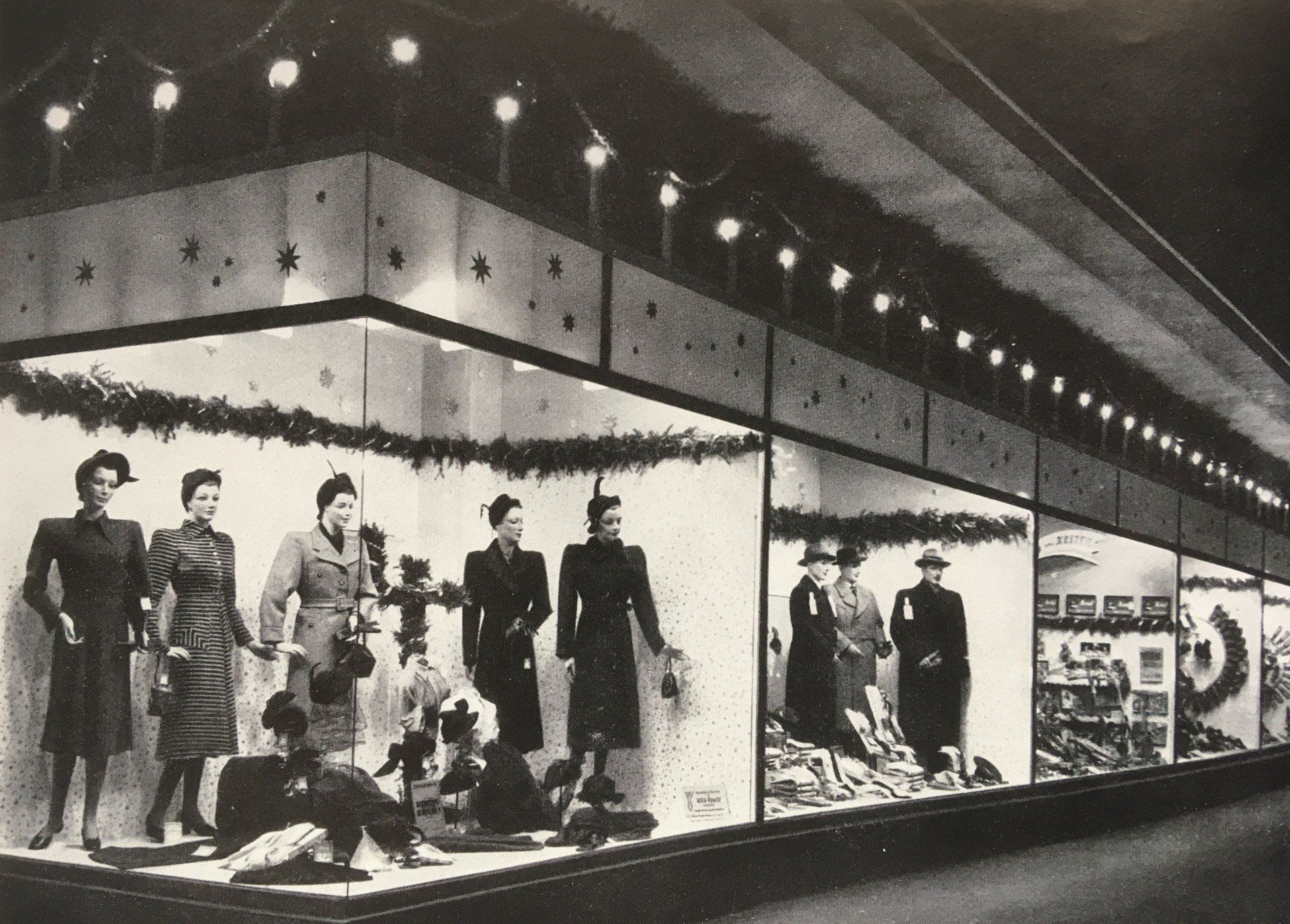 Die Schaufenster waren deshalb hauptsächlich auf weibliche Kundschaft ausgerichtet; der Mann war der Ernährer der Familie, die Frau besorgte die Einkäufe und zu Weihnachten die Geschenke. Tenor der (Schau-) Werbung war die adrett gekleidete Familie, die sich freudig-strahlend vor dem Weihnachtsbaum die Geschenke überreichte. Das Familienoberhaupt durfte sich über eine neue Krawatte oder Manschettenknöpfe freuen. Der elektrische Rasierer ergänzte im Laufe der Fünfziger ebenfalls zu Weihnachten die Haushalte.