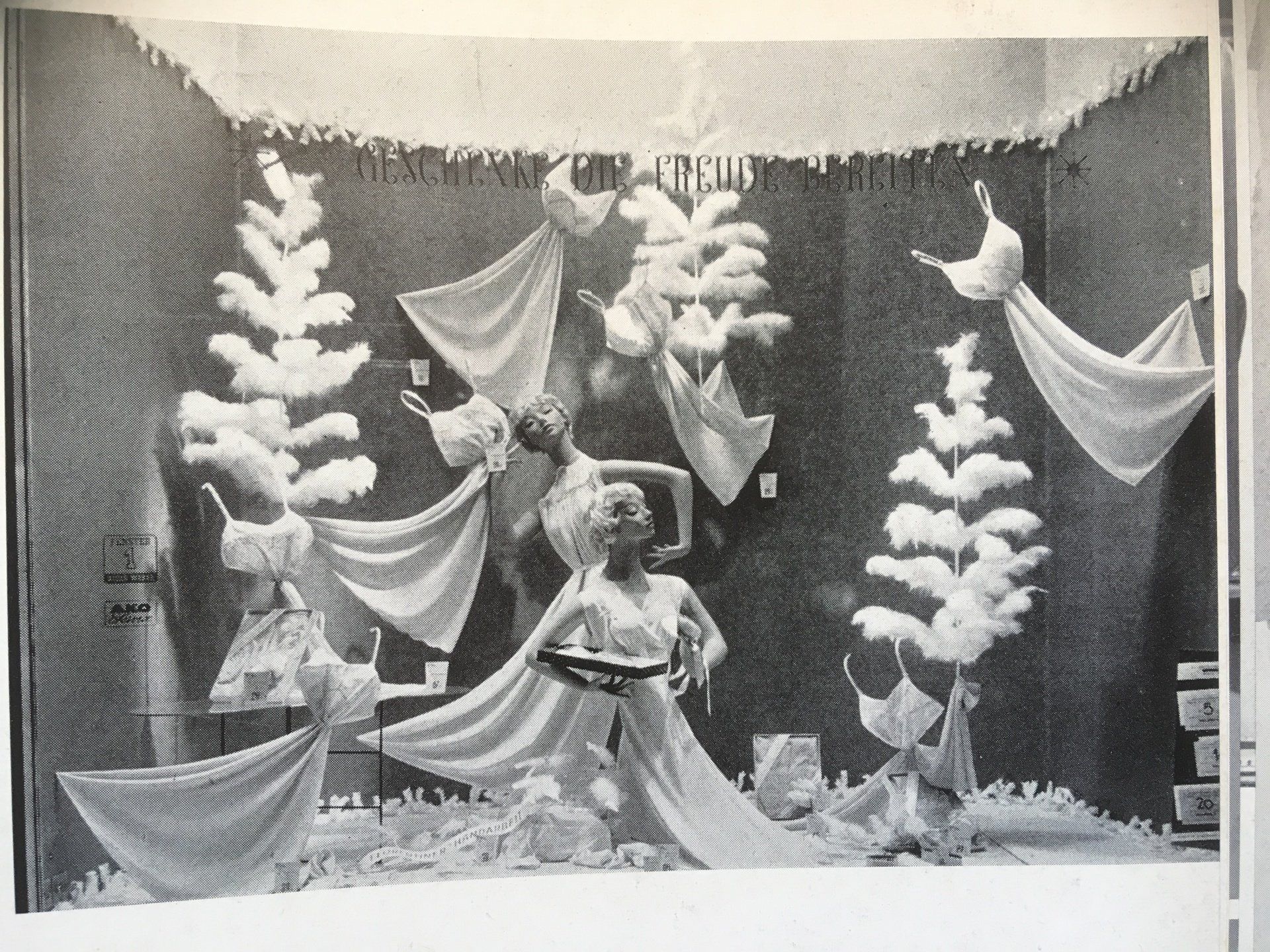 ButtonDas vorliegende Foto zeigt eine Dekoration in der Ausgabe "Das Schaufenster" vom Januar 1952. Das Schaufenster gehörte dem Kaufhaus Theodor Althoff, Inhaber: R.Karstadt AG in Gladbeck / Westfalen.